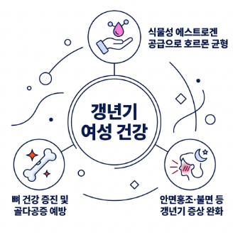 이소플라본 성분은 뼈에서 칼슘이 빠져나가는 것을 막아줍니다. 특히 여성들의 폐경 이후 급격히 진행되는 골다공증 예방에 필수적인 영양 공급원이 됩니다.
